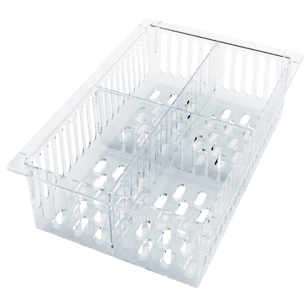 - The modules and baskets come with a level bearing edge to ensure that they easily slide across the runners of cabinets, carts and racks. Due to their straight sides, you will not lose out on volume. The closed base of the modules prevents liquids dripping through the base and small items of equipment slipping through.