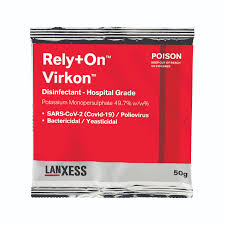 RelyOn Virkon is effective in killing micro-organisms in less than 10 minutes, even in the presence of organic matter. Broad spectrum Virkon is efficacious against a multitude of strains/clinical isolates (viral, bacteria and fungal). Proven effective against viral strains, Gram +ve & -ve bacteria, Antibiotic Resistant & Hard To Kill bacteria and against strains of fungi.