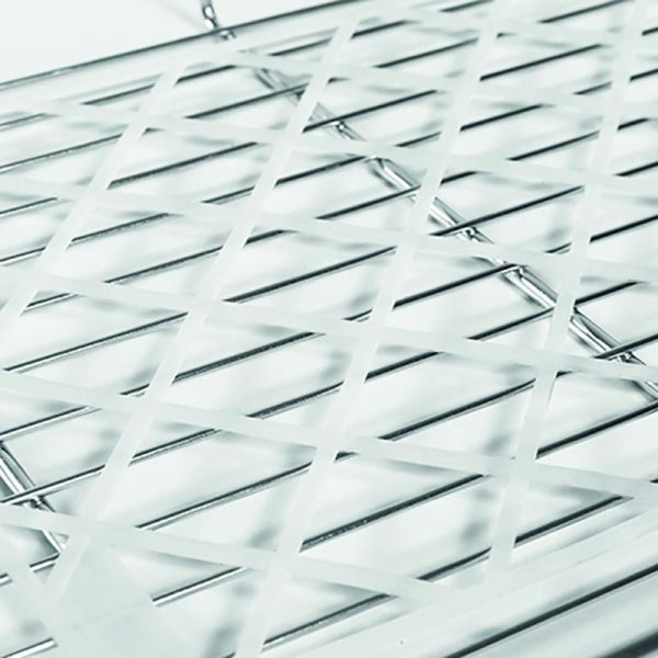 Sterisystem® highly polished Perfo-Safe® wire shelves are the perfect solution if you need to sterilise, transport and store diverse sterilisation packs. They are available in standard sizes : DIN (300 x 600 mm), ISO (400 x 600 mm) and for larger sterilisation packs in double DIN (600 x 600 mm).